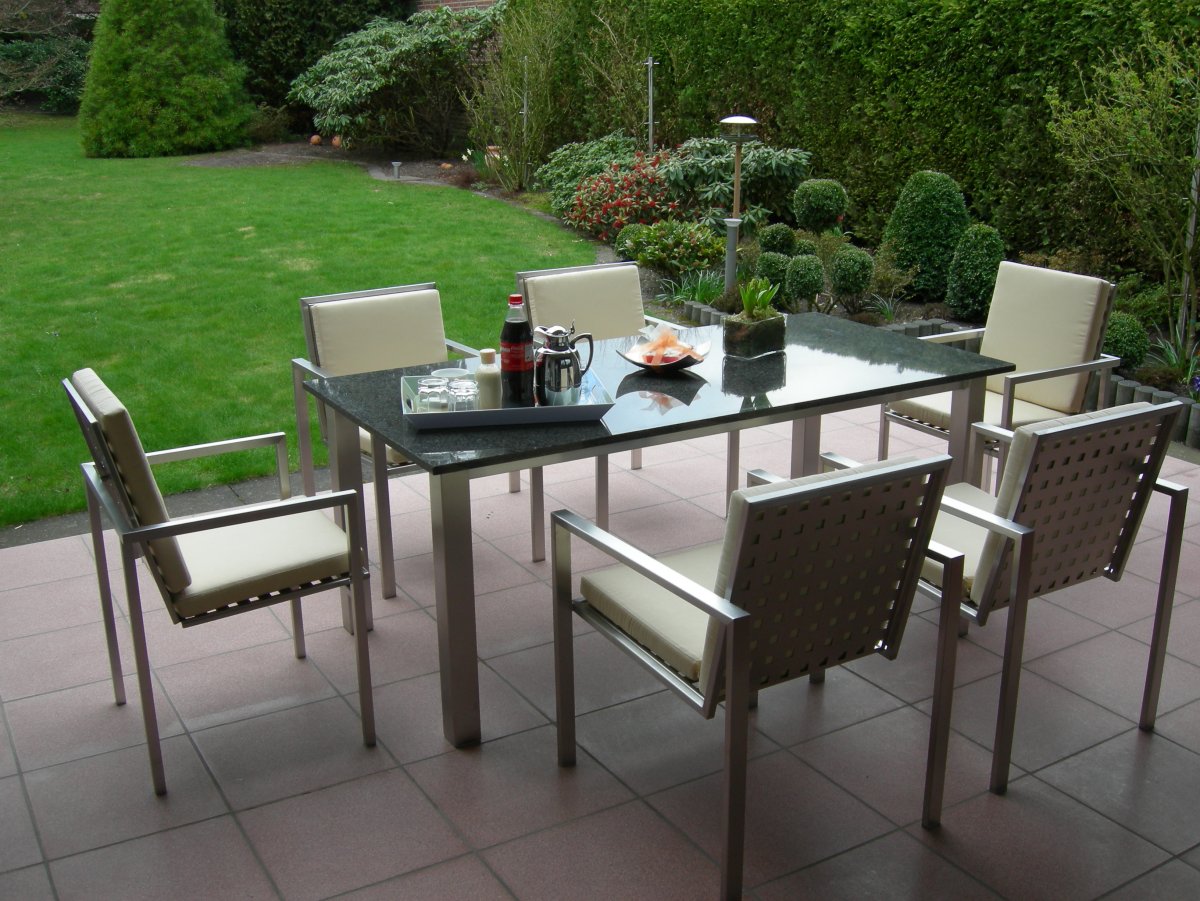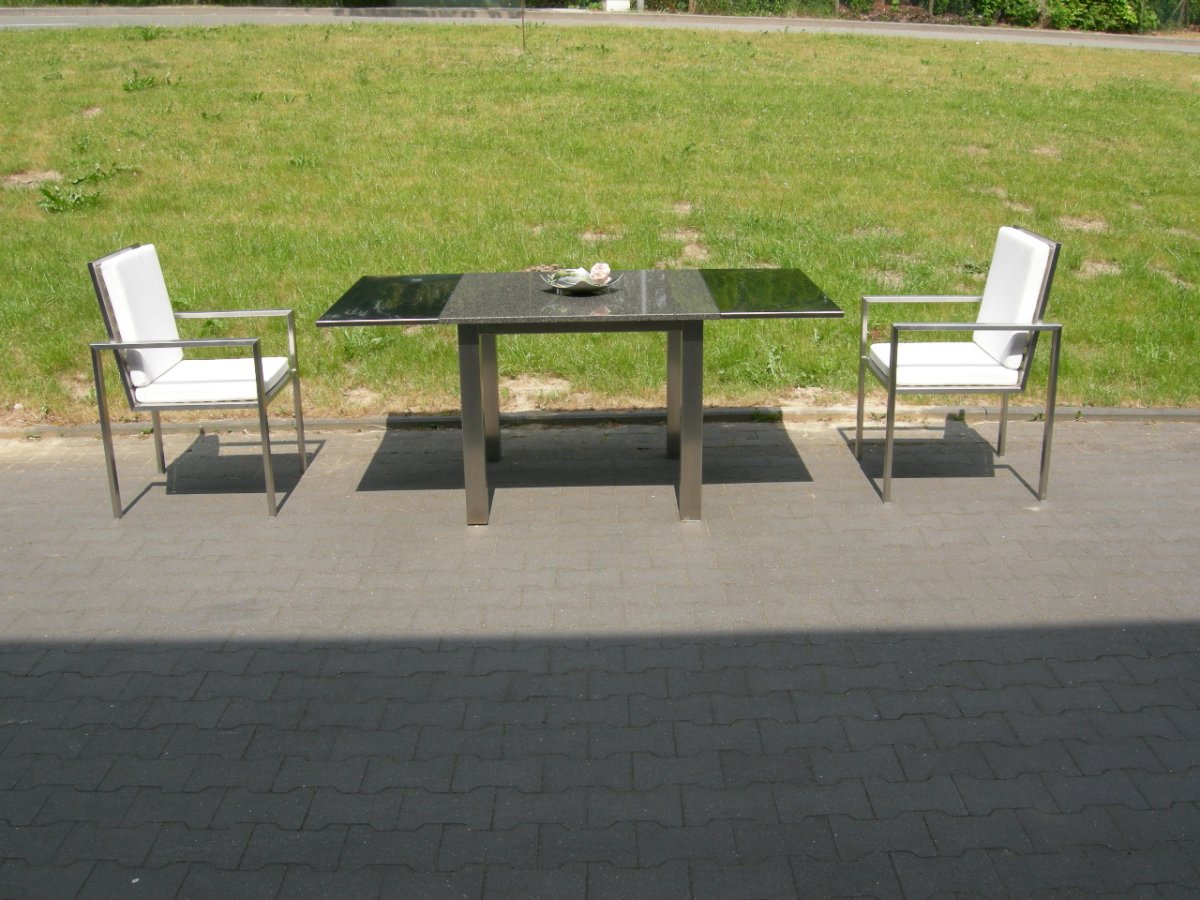 Design und Komfort vereint der Stapelstuhl. Filigrane Edelstahlprofile umrahmen die passgenauen Auflagen. Für den aufrechten Sitz mit einer Lehnenhöhe von 50 cm. Die Auflagen für die Kollektionen halten wir in verschiedenen Materialien und Farben bereit. Stoffpolster waschbar, UV-beständig, schmutz- und wasserabweisend, Reißverschlüsse, Klettverschlüsse hinten am Sitz. Bezüge auch aus Skai (Longlife)- Leder oder echtem Leder.