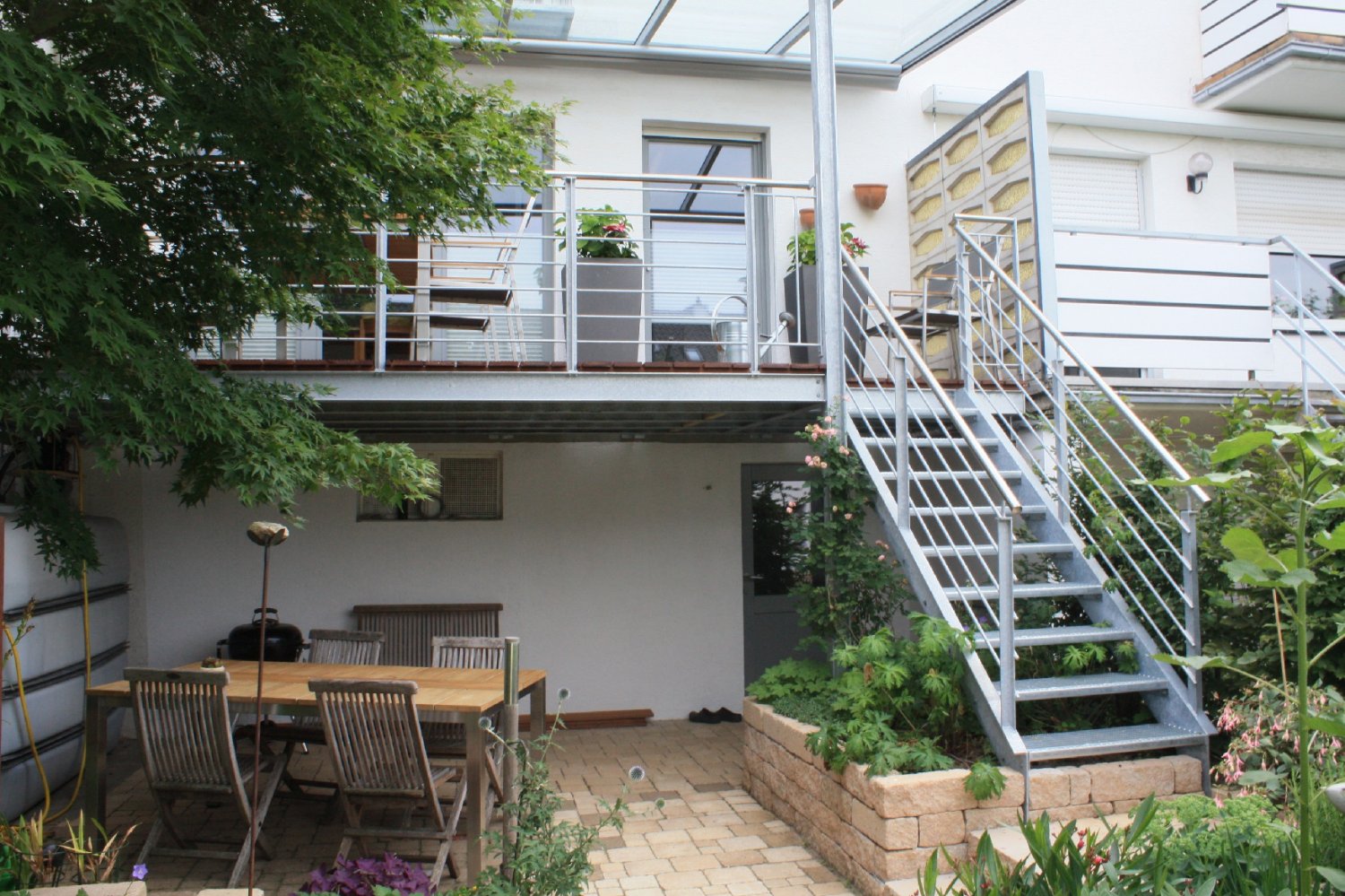- Balkon mit Treppe und Beschattung