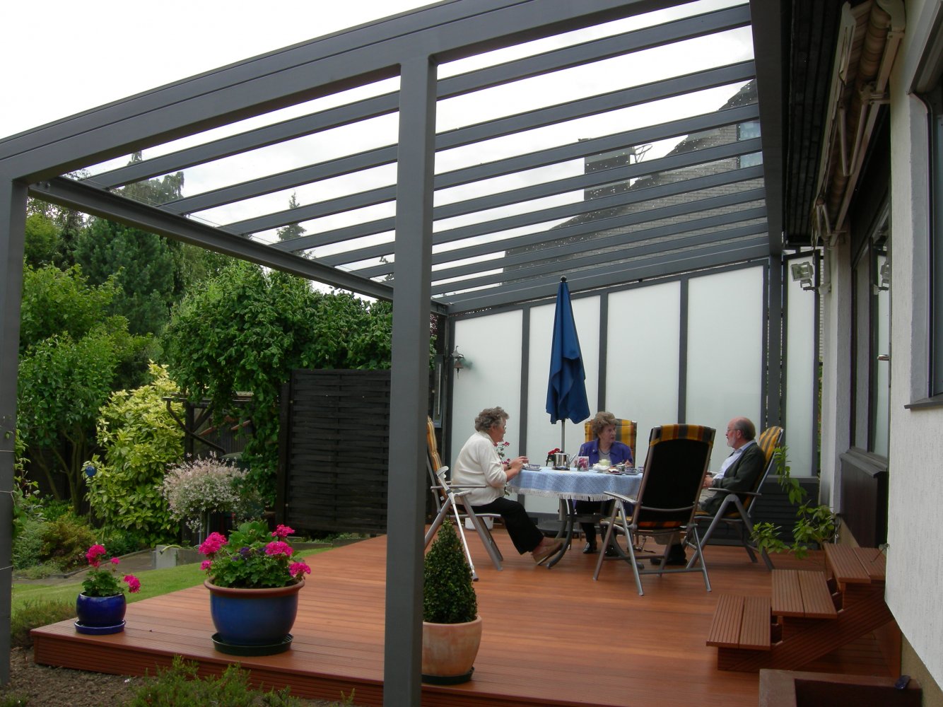 Nutzen Sie die Vorteile einer Terrassenüberdachung mit unserer Gestaltungsvielfalt, die keine Wünsche offen lässt. Ob rund oder eckig – für Ihren Gebäudestil konstruieren wir Ihre Überdachung als Anbau, in Gebäudenischen oder als Pavillon. In allen RAL Farben, mit verschiedensten Glasvarianten, wahlweise mit Windschutzverglasung, Beschattung und Beleuchtung oder der Vertikalbeschattung.